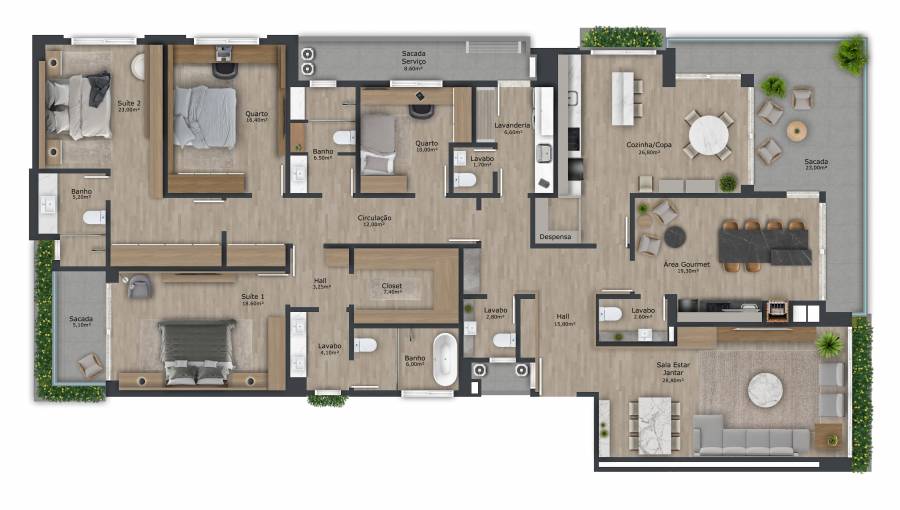 Um ambiente sustentável para o seu conforto, com apartamentos que variam de 109 m² a 280 m².